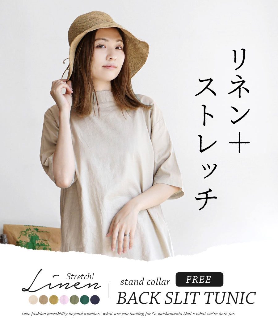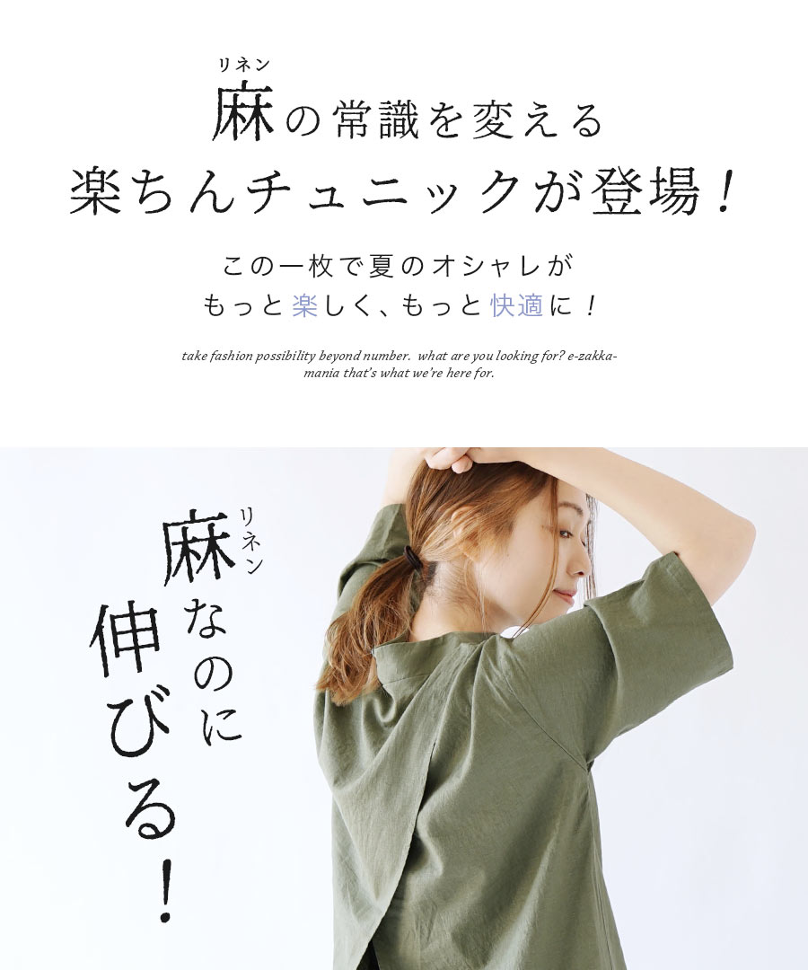 【クーポンで20%OFF☆5/6 13:59まで】ワンピース / バックスリット で抜け感チュニック。 レディース ワンピ チュニックワンピース 半袖 半そで ハイネック 麻混 リネン混 ◆zootie(ズーティー):ストレッチリネン バックスリット チュニック