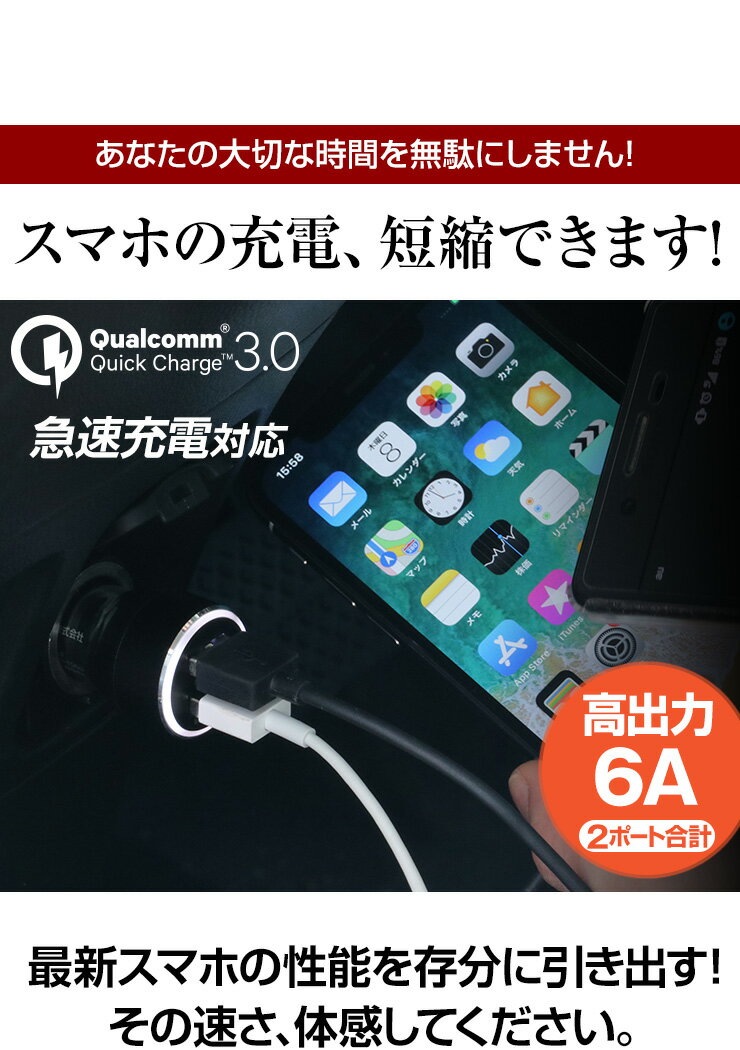 カーチャージャー シガーソケット usb 携帯充電器 車 充電器 車載充電器 スマホ iPhone 4.8A 急速充電 車載 12V タブレット スマホ充電器 アイコス 2連 2ポート 増設 延長 ライト 2ポート カー用 バイク コンセント