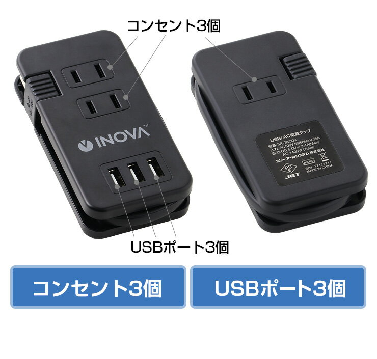 INOVA Smacube TAP3 ケーブル収納 コンセント USB 電源ケーブル 電源コード たこ足 延長コード タコ足コンセント アイフォン マルチ タップ 電源タップ usb タコ足配線 スマホ充電器 モバイルバッテリー タコ足 イノバ