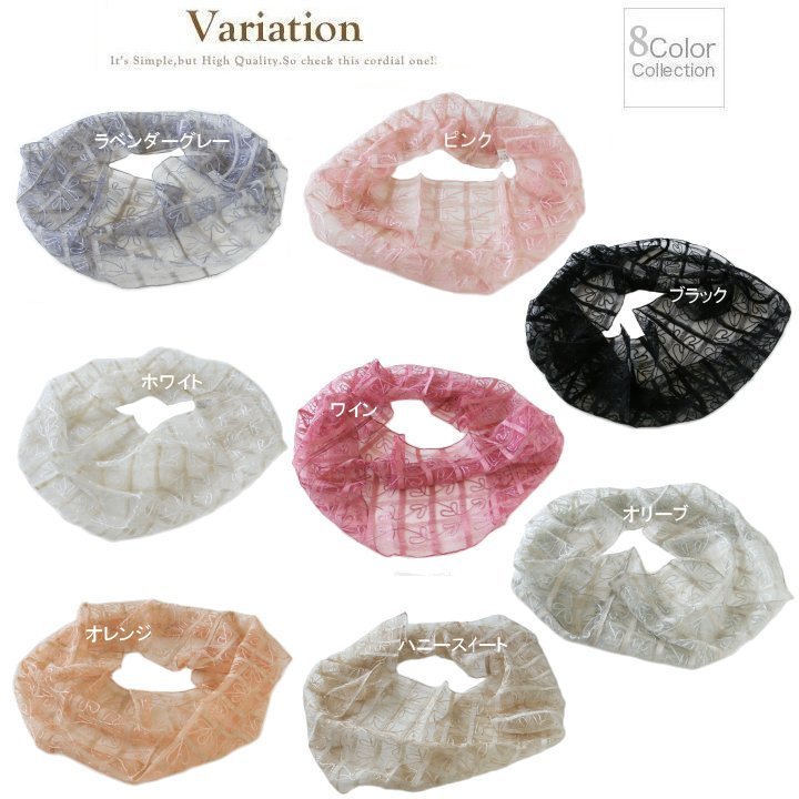 薄手のリングスカーフ8色展開で新登場です! マフラーやストールのように落ちてこないから風が強い時にも◎ すっきりまとまるリング゛スヌード。